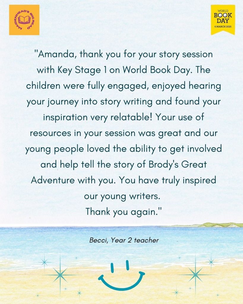 “Our KS1 children were absolutely captivated by Amanda’s author workshop. From start to finish, they were completely attentive, and asked incredibly thoughtful and engaging questions. It was a joy to see them so focused and inspired. We would wholeheartedly welcome Amanda back to our school.” – Year 1 Teacher, St Edmund Campion Primary School, Berkshire